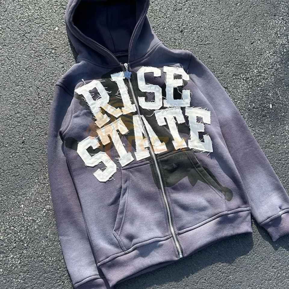 Sudadera con capucha vaquera desgastada personalizada para hombre, jersey con cremallera y forro polar de algodón 100%, estampado bordado, diamantes de imitación, comodidad de invierno