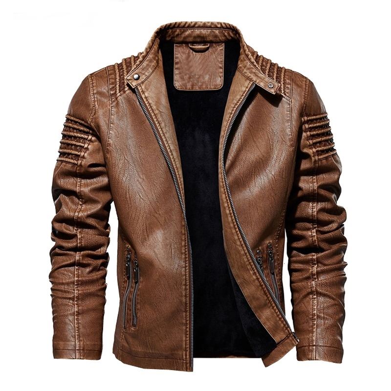 Chaqueta de Cuero para Hombre, Nueva, de Invierno y Otoño, Abrigo de Motociclista, Cálida, a la Moda, Entallada, Ropa de Marca para Hombre