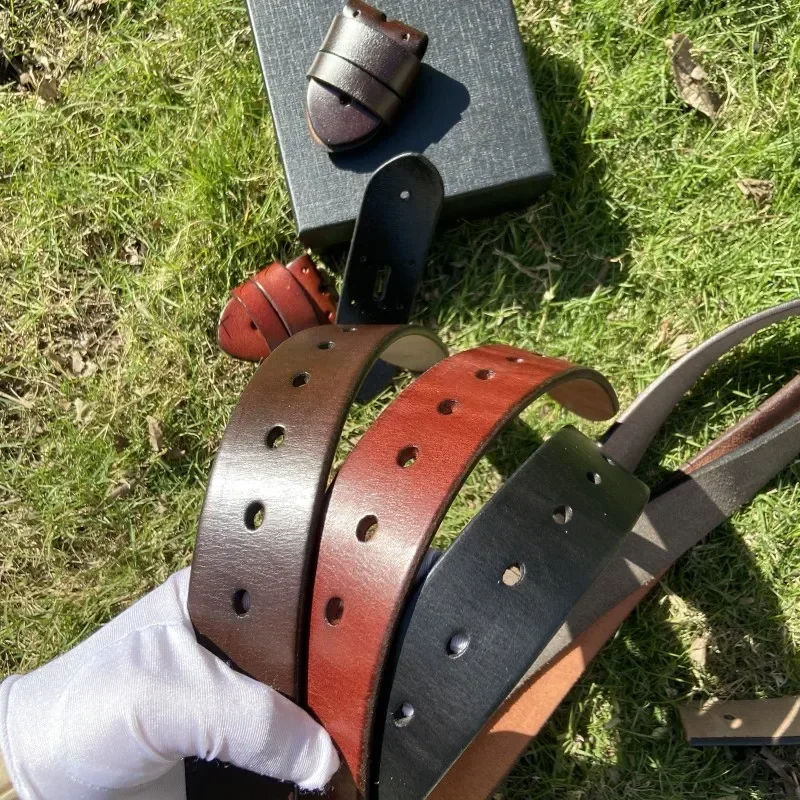 Nuevo cinturón con hebilla de PIN para hombre, cinturones reversibles con hebilla giratoria de aleación para hombre, cinturón de cuero genuino, venta al por mayor, OEM