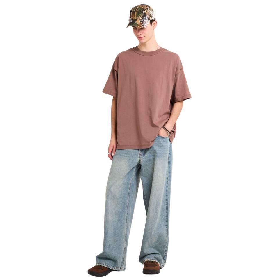 Nueva Camiseta de Hombre de Color Sólido, Manga Corta, Casual, Holgada, con Costuras Invertidas, 100% Algodón Jersey, Transpirable