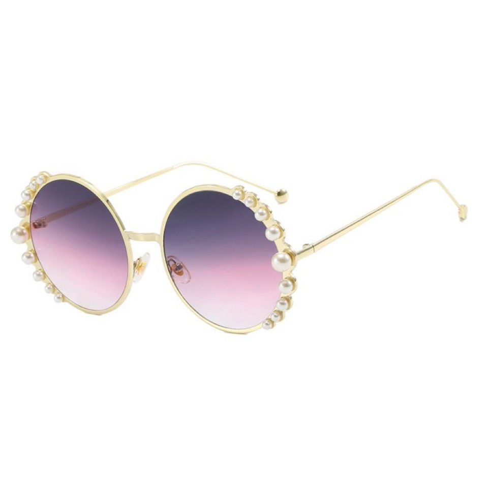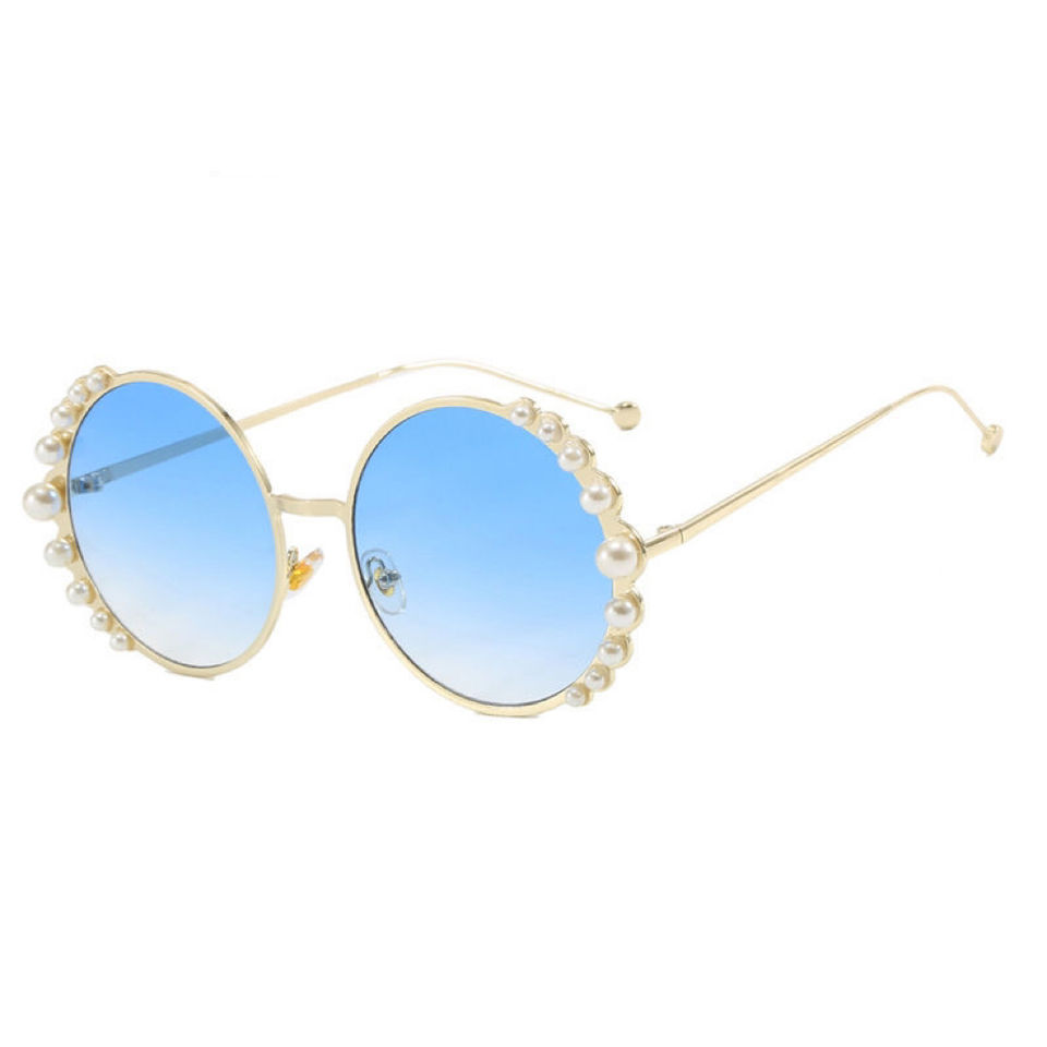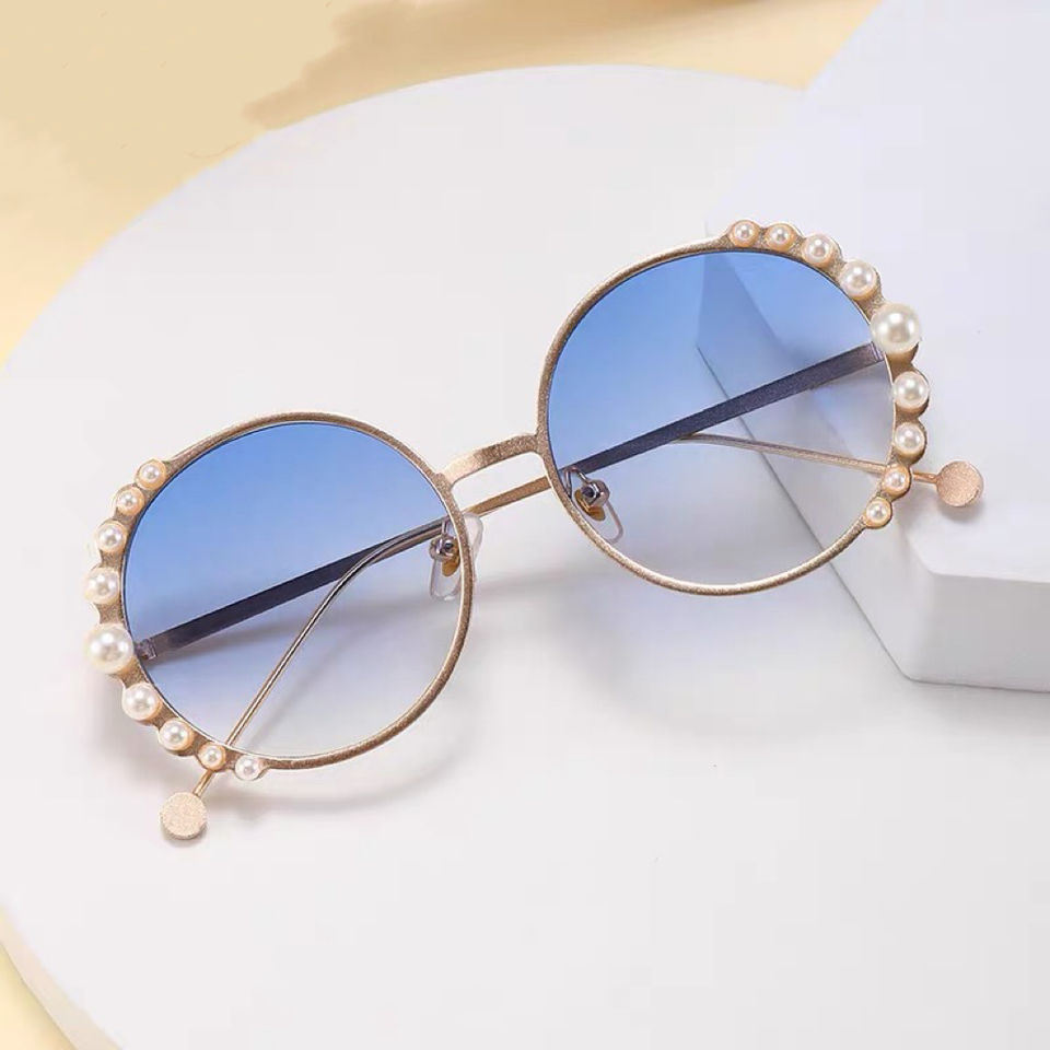 Nuevas Gafas de Sol con Marco Redondo de Metal y Lentes Color Océano, Unisex, con Perlas, Morado y Azul, UV400, Moda, Lujo, Esenciales para Viajar