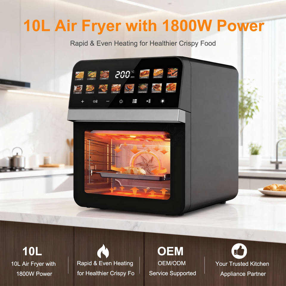 Freidora por aire, Repostería, Parrilla, Multi-función, Sin aceite, Con mirilla de observacion, Asado, Con luz indicadora, Protección contra sobrecalentamientoFunción