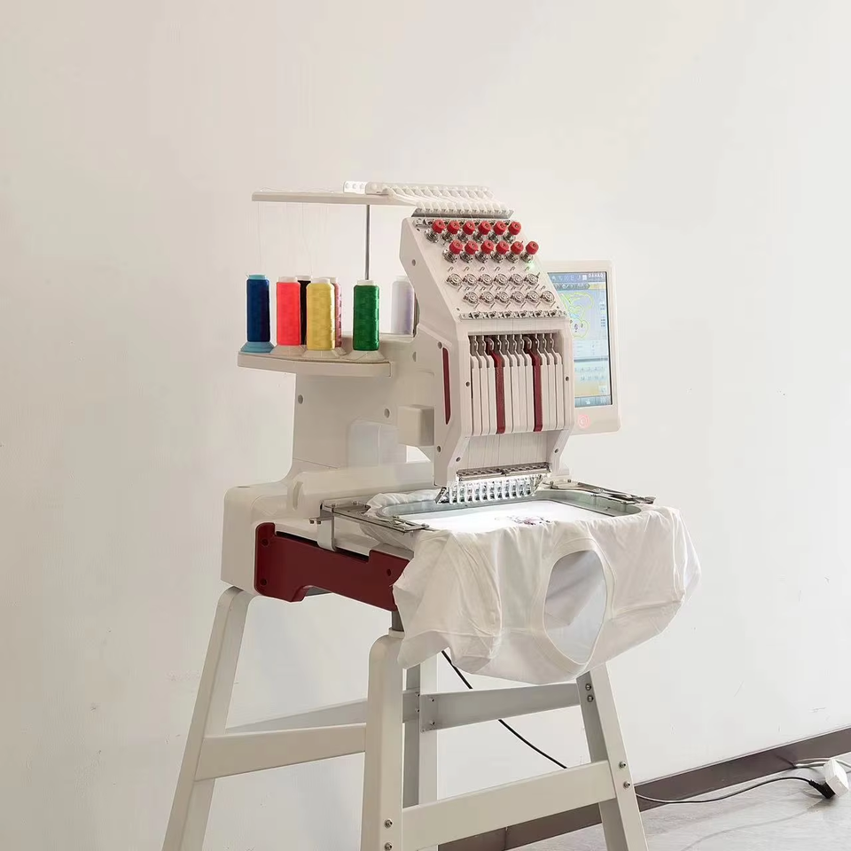 Máquina de bordar computarizada de una sola cabeza, 9/12 agujas, para gorras planas y camisetas, modelo nuevo, lista para usar.