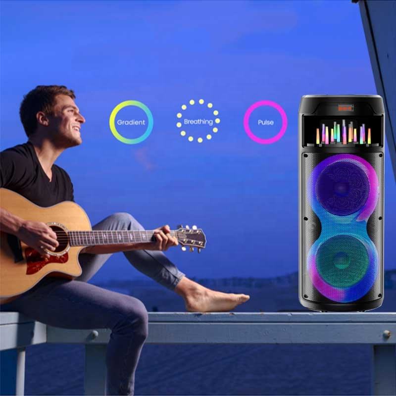 Nuevo Modelo Doble de 8 Pulgadas con Luz en Forma de 8 y Luz de Platillo Volador para Altavoz con LED RGB y Carga Inalámbrica