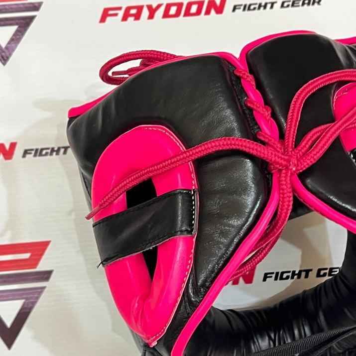 Protector Facial Completo para Entrenamiento de Boxeo, Modelo Nuevo, Color Rosa y Negro, Personalizable, Profesional, de Cuero, Ajustable, para Sparring de Muay Thai