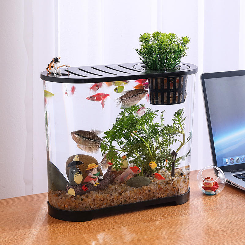 Nuevo modelo de tanque de peces dorados, Acuario de escritorio, vidrio de imitación transparente para espacios pequeños medianos para el hogar, sala de estar