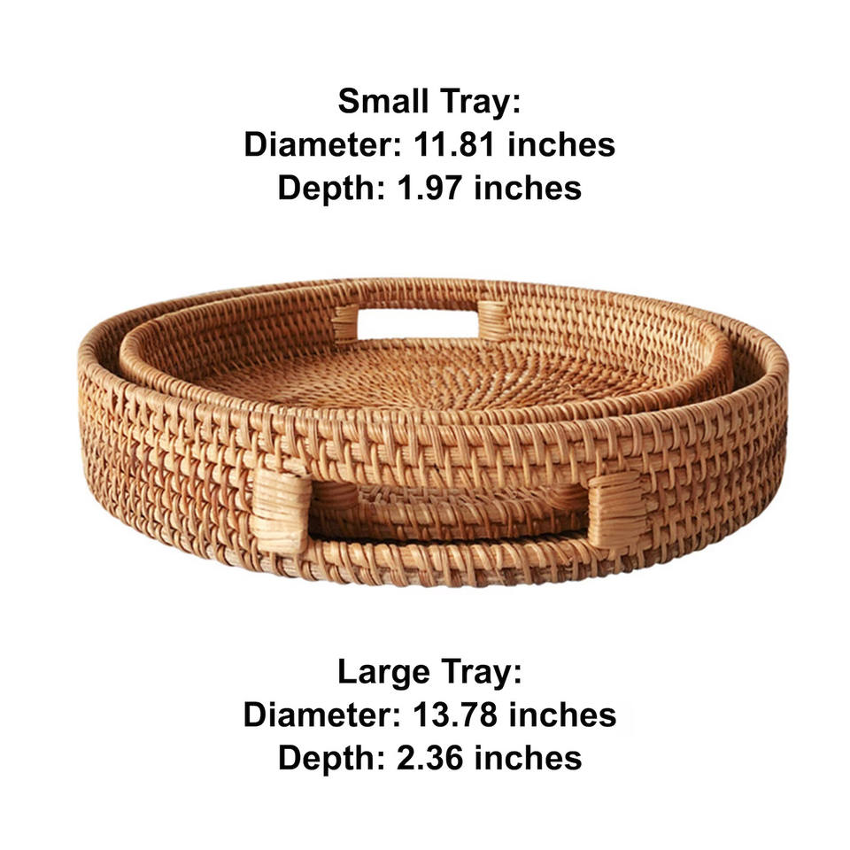 Nuevo modelo de bandeja redonda de ratán con asas, alimentos decorativos y de almacenamiento, frutas, uso para cocina, picnic