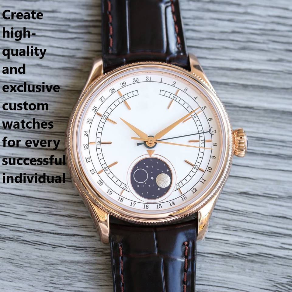 Nuevo Modelo de Reloj para Hombre, Todo en Oro Rosa y Oro Rojo, Tecnología de Vanguardia, Correa de Cuero Italiano Negro, Reloj con Fase Lunar
