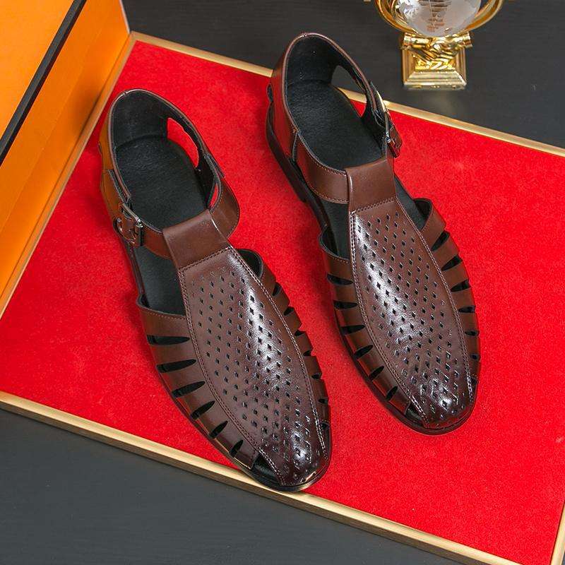 Nuevos Modelos de Alta Calidad, Sandalias Cruzadas Originales para Hombre, Pantuflas con Banda Elástica, Zapatos Deportivos Negros de Piel Vacuna, Moda de Primavera Verano