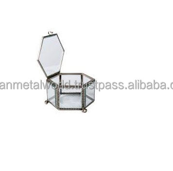 Organizador de joyas de Metal y transparente, caja de cristal de joyería, exhibición de latón, baratija, nuevo estilo moderno