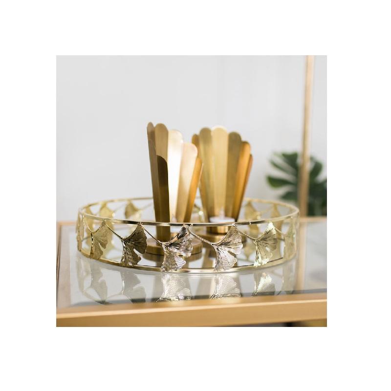 Bandeja de cristal con diseño floreciente de forma redondeada de aluminio de alta calidad para bodas modernas para servir velas