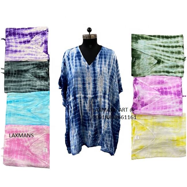 Nuevo multicolor mano Tie Dye rayón impreso señoras Tops vestido al por mayor proveedor de la India