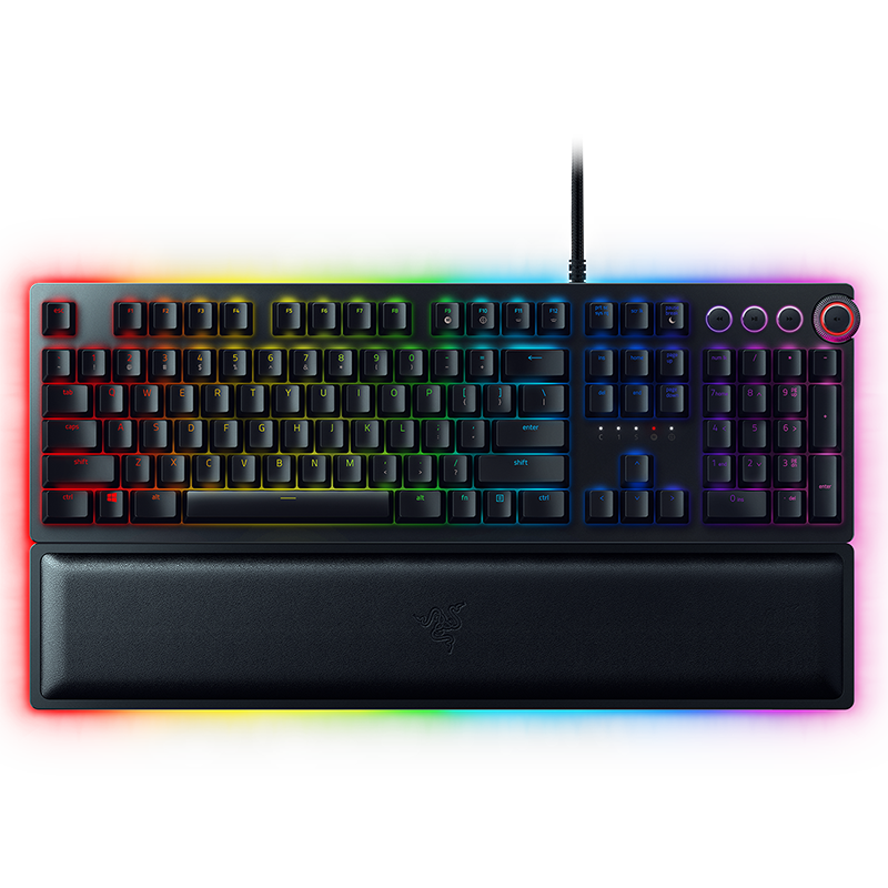 Nuevo Teclado Gamer Razer Huntsman Elite RGB con Reposamuñecas, Multifunción, Dial Digital, Interruptor Óptico Negro