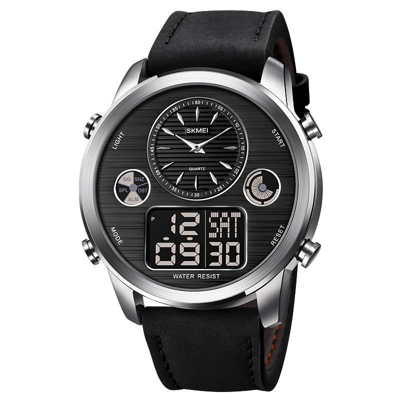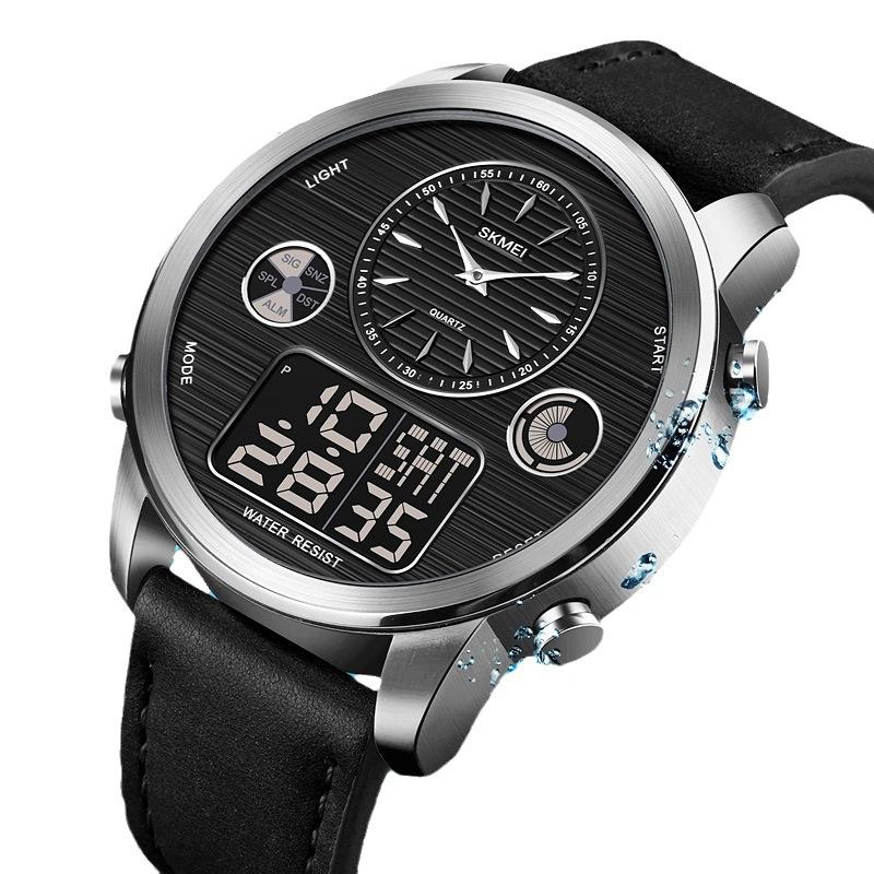 Nuevo Reloj Multifunción con Doble Pantalla Resistente al Agua para Hombre, Luminoso, con Calendario, Cronógrafo, Correa de Cuero, Deportivo, Digital y Analógico
