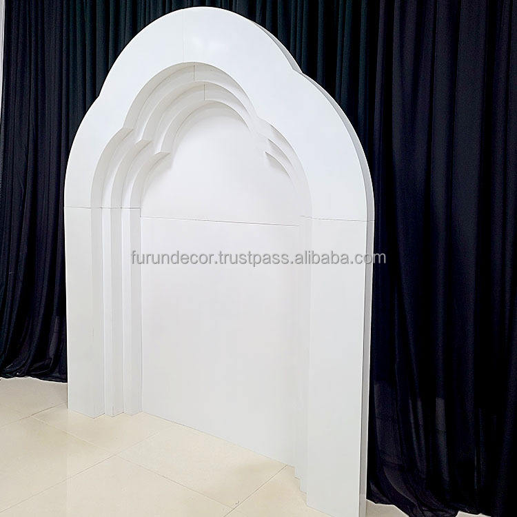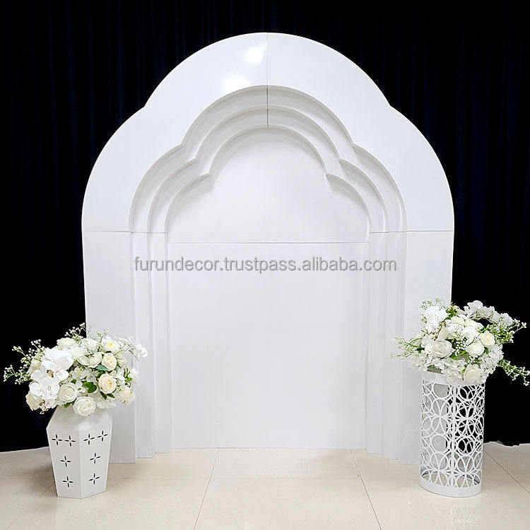 Nueva decoración de escenario de múltiples accesorios, arco de boda curvo blanco grande, arte del hierro multicapa exclusivo para bodas y fiestas
