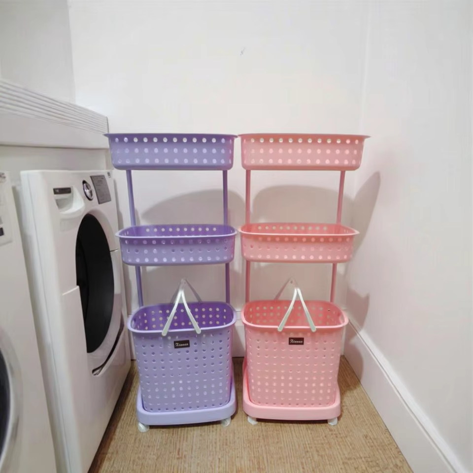 Nuevo Cesto de Ropa Sucia Multicapa Portátil de Plástico con Ruedas
