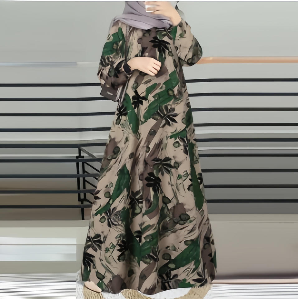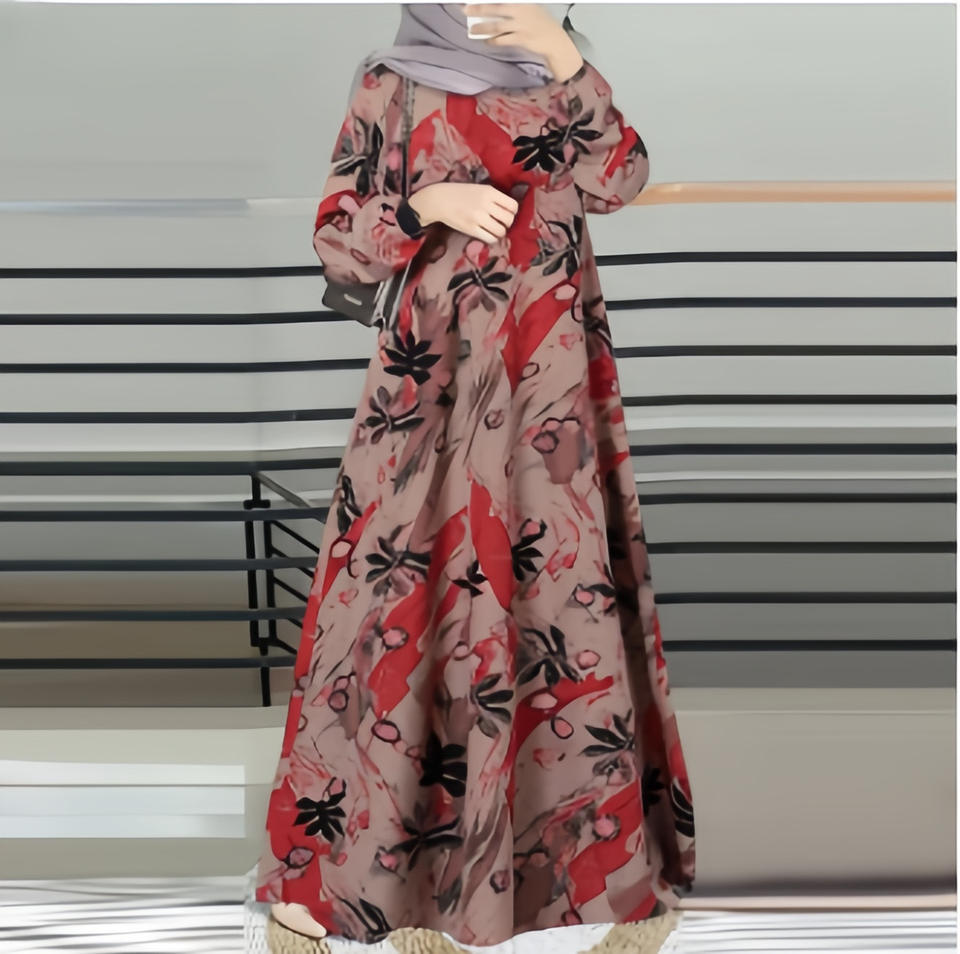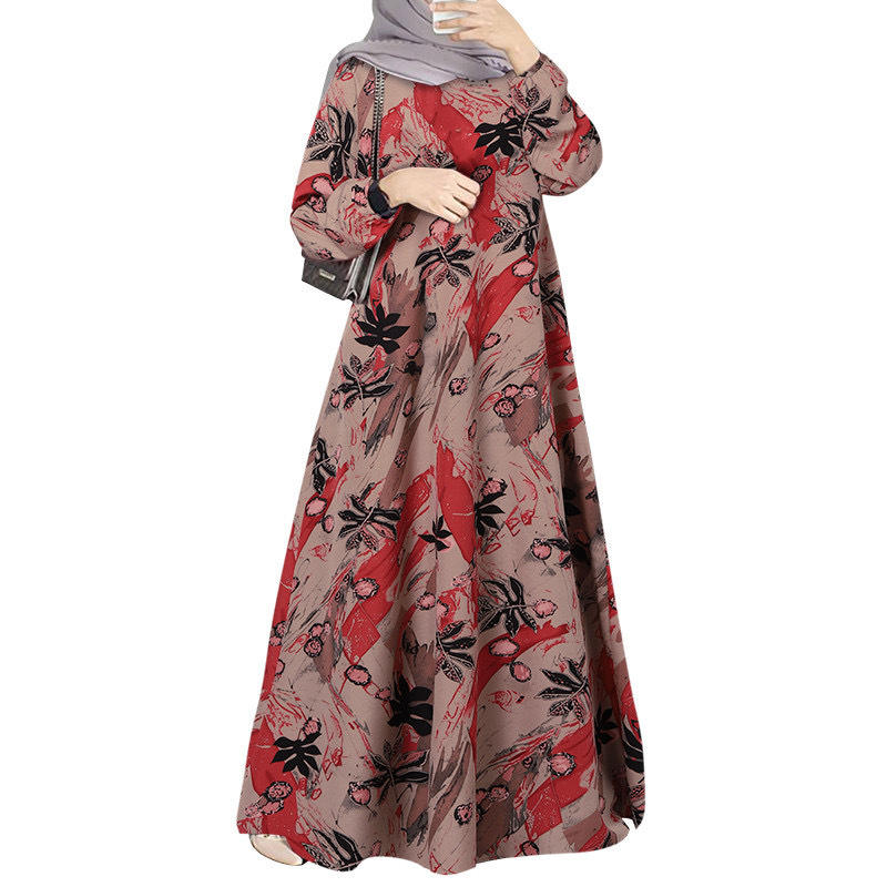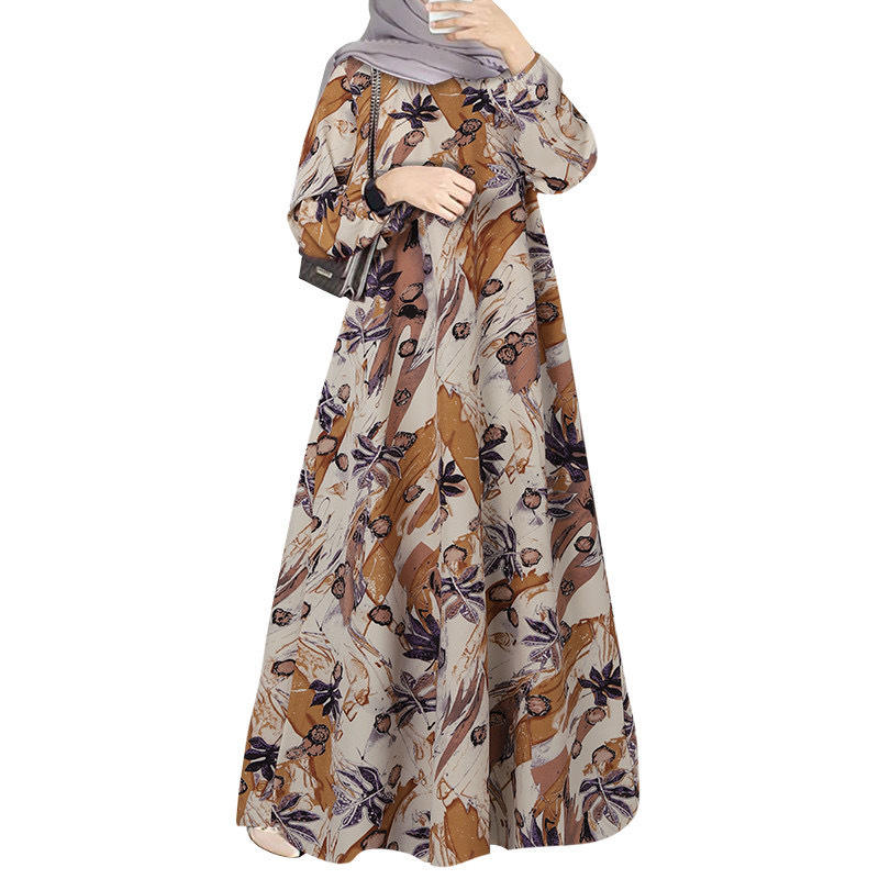 Nuevo Vestido Largo para Mujeres Musulmanas, Manga Larga, Cuello Redondo, Estampado, Holgado, Estilo Tradicional de Oriente Medio, Arabia Saudita, Malasia
