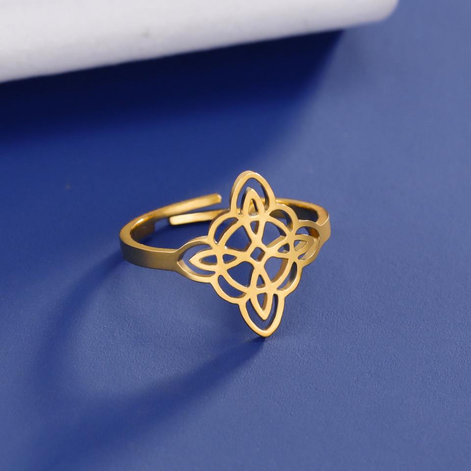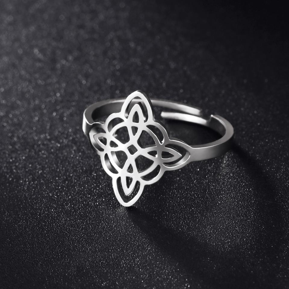 Nuevo anillo con amuleto de nudo de bruja del Norte, joyería de moda de acero inoxidable, anillo de amuleto de brujería con nudo celta hueco irlandés abierto para mujer