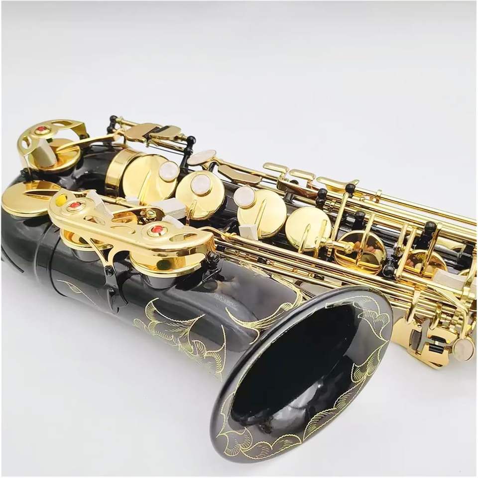 Nueva oferta, Saxofón negro, E-Flat, patrón tallado, instrumento Musical de Jazz para principiantes y profesionales