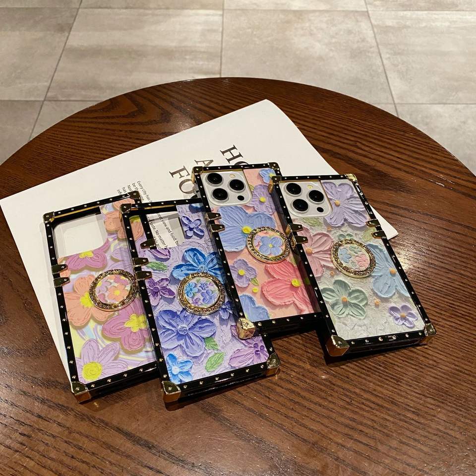 Nuevo soporte de anillo de flor de pintura al óleo para iPhone 15promax Phone Case 14pro Estuche blando resistente a caídas