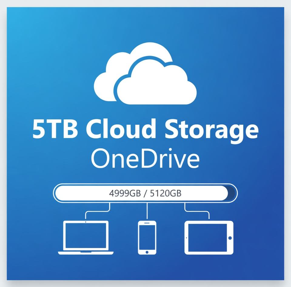 Nuevo Almacenamiento en la Nube OneDrive de 5 TB, Compatible con Cualquier Dispositivo, Acceso de por Vida, en Existencia y Envío Rápido, Cuenta y Contraseña Vision
