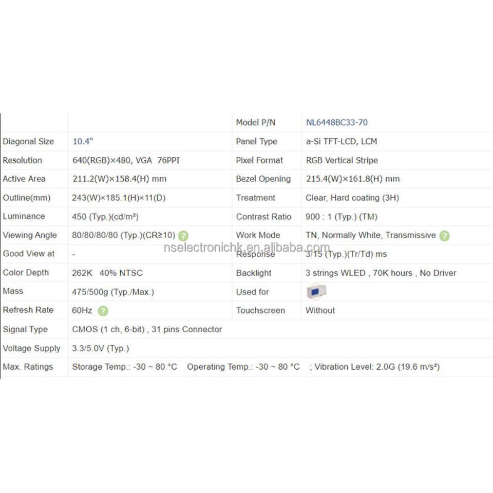 Nueva pantalla LCD TFT VGA Original de 10,4 pulgadas, 640 × 480, para control industrial, pantalla de equipos médicos y automotrices, NL6448BC33-70