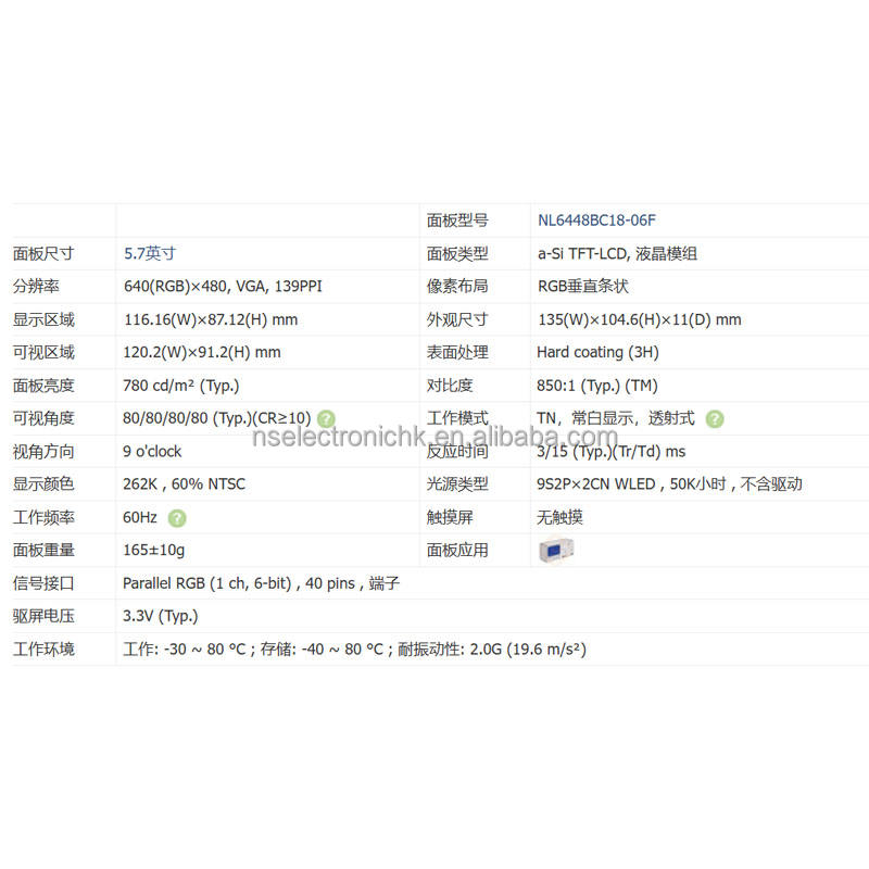 Nueva pantalla LCD industrial VGA original de 5,7 pulgadas, 640 × 480, para control industrial, pantalla de equipos automotrices, NL6448BC18-06F