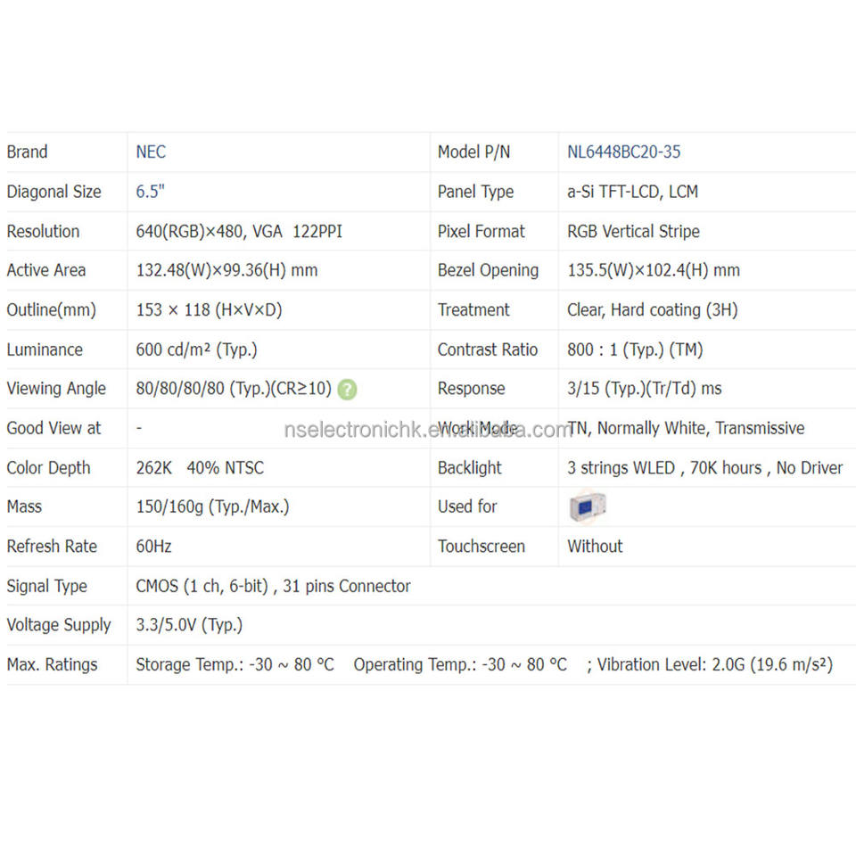 Nueva pantalla LCD industrial VGA original de 6,5 pulgadas, 640 × 480, para control industrial, pantalla de equipos automotrices, NL6448BC20-35
