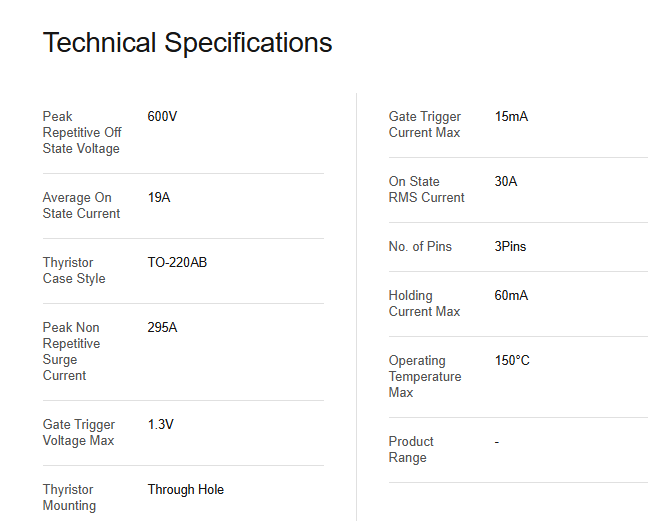 Voltaje máximo repetitivo en estado de apagado:600 voltios