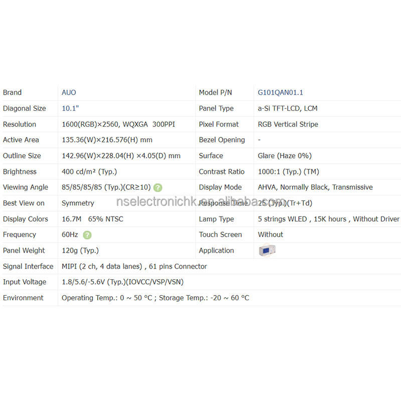 Nuevo módulo LCD TFT industrial de alta resolución de 10,1 pulgadas, 1600 × 2560, Original, en stock, para dispositivos industriales de alta gama, G101QAN01.1