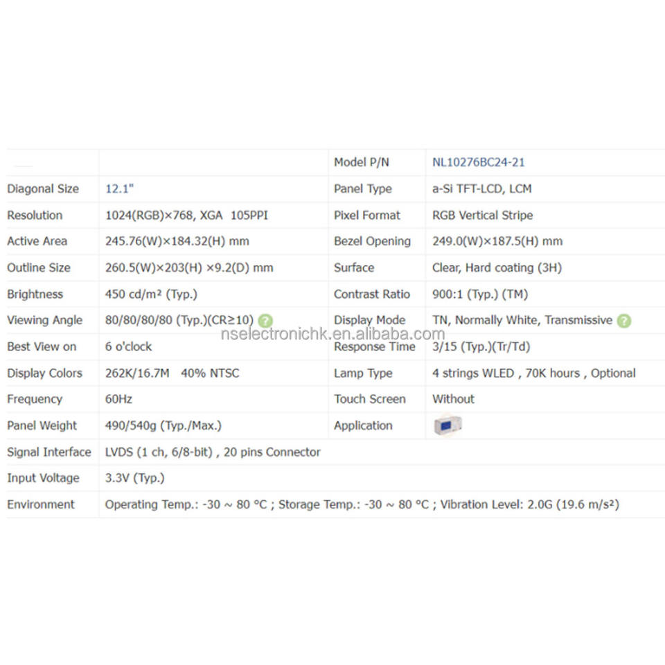 Nuevo Panel LCD TFT XGA de 12,1 pulgadas, 1024 × 768, Original, en Stock, para pantalla de equipos automotrices HMI industriales, NL10276BC24-21