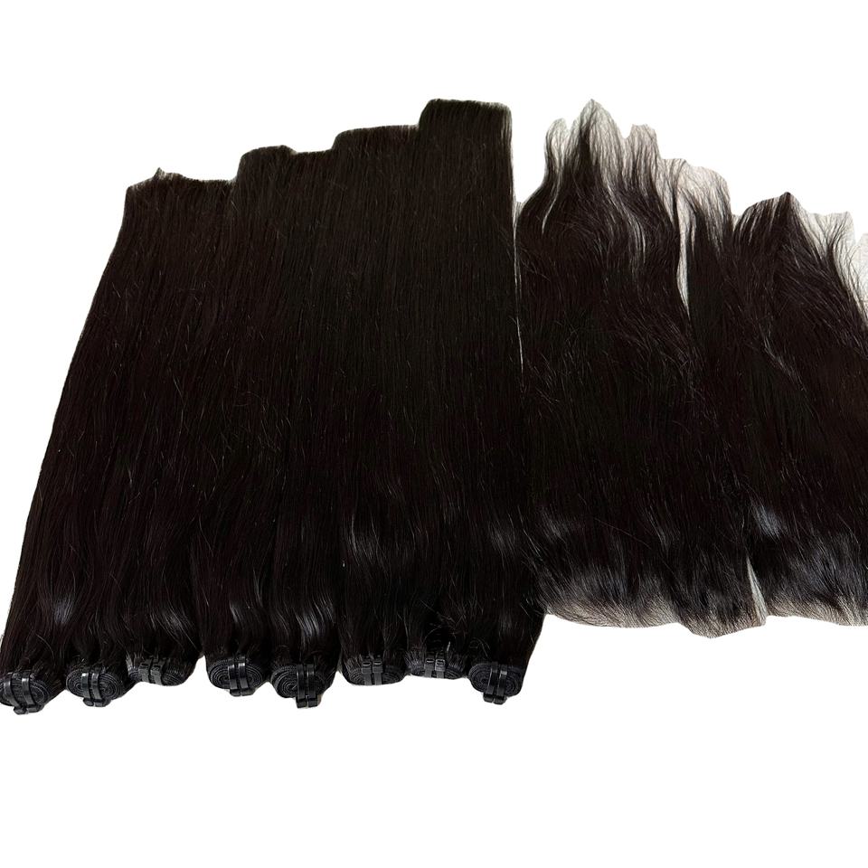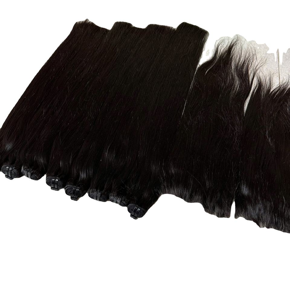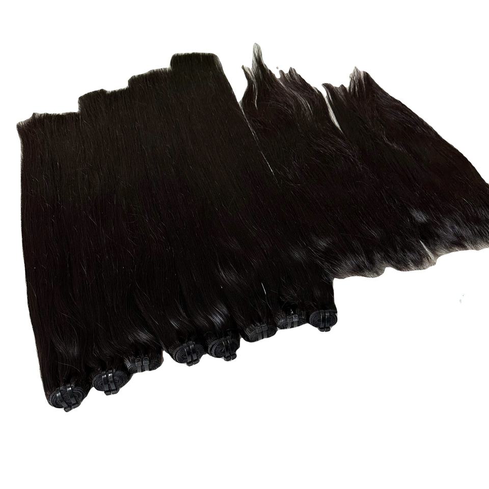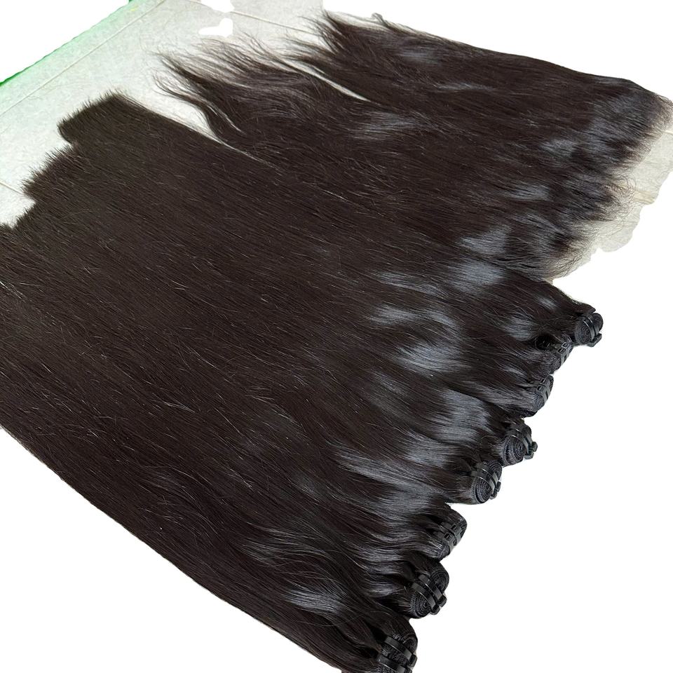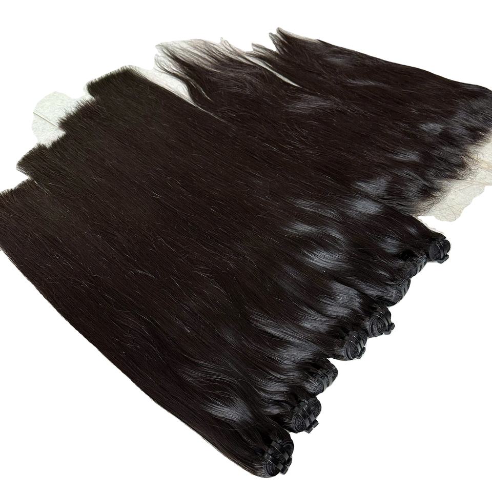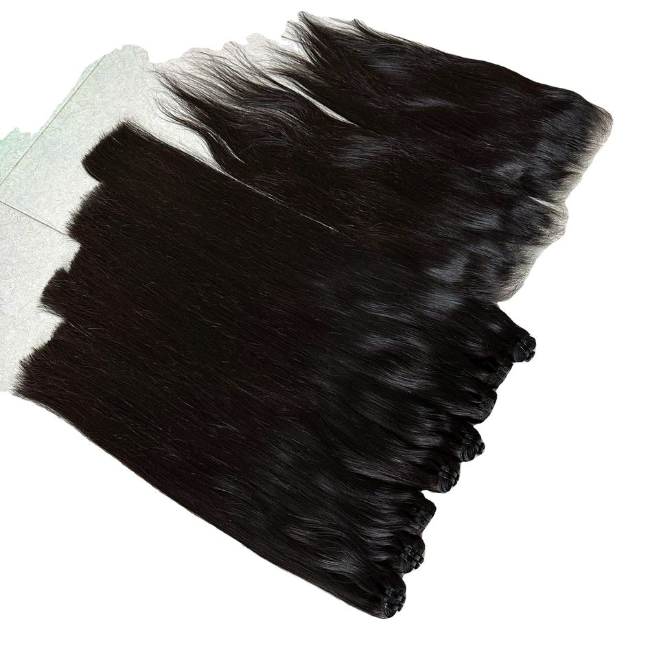 Nuevas extensiones de cabello Remy humano crudo Original trama recta Natural máquina de piel doble paquetes de belleza para estilo de mujer