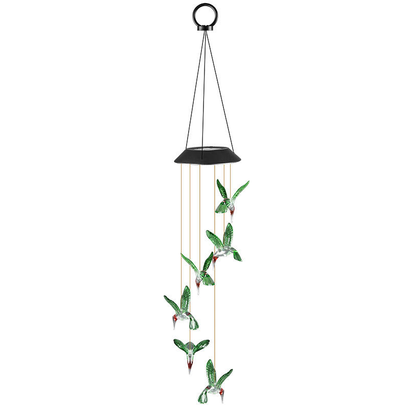 Nuevo carillón de viento Solar LED para exteriores, luz impermeable para jardín, carillón de viento, colibrí, mariposa, Bola de EVA, Patio de vidrio degradado colorido