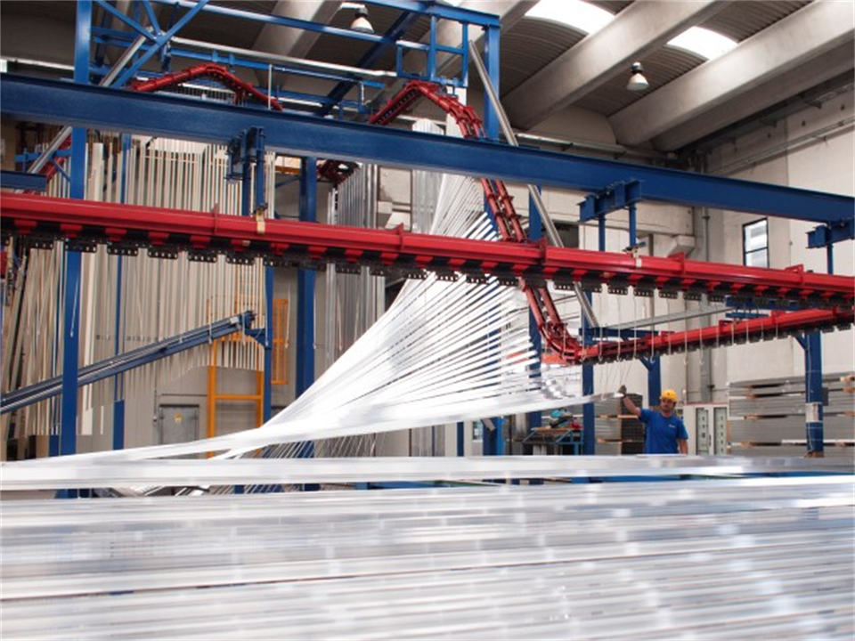 Nueva línea de pintura para perfiles de aluminio, aplicación vertical de pretratamiento por pulverización de polvo, incluyendo cabina de secado y horno de curado