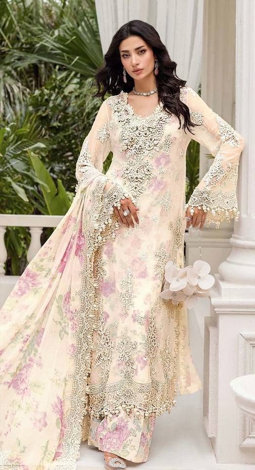 Nueva colección de trajes sin costuras de Organza dupatta y bordado pesado de diseñador pakistaní