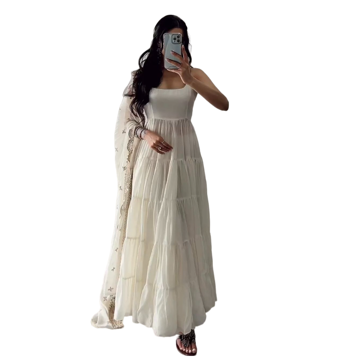 Nombre del producto:Mujeres Anarkali Kurti Con Dupatta