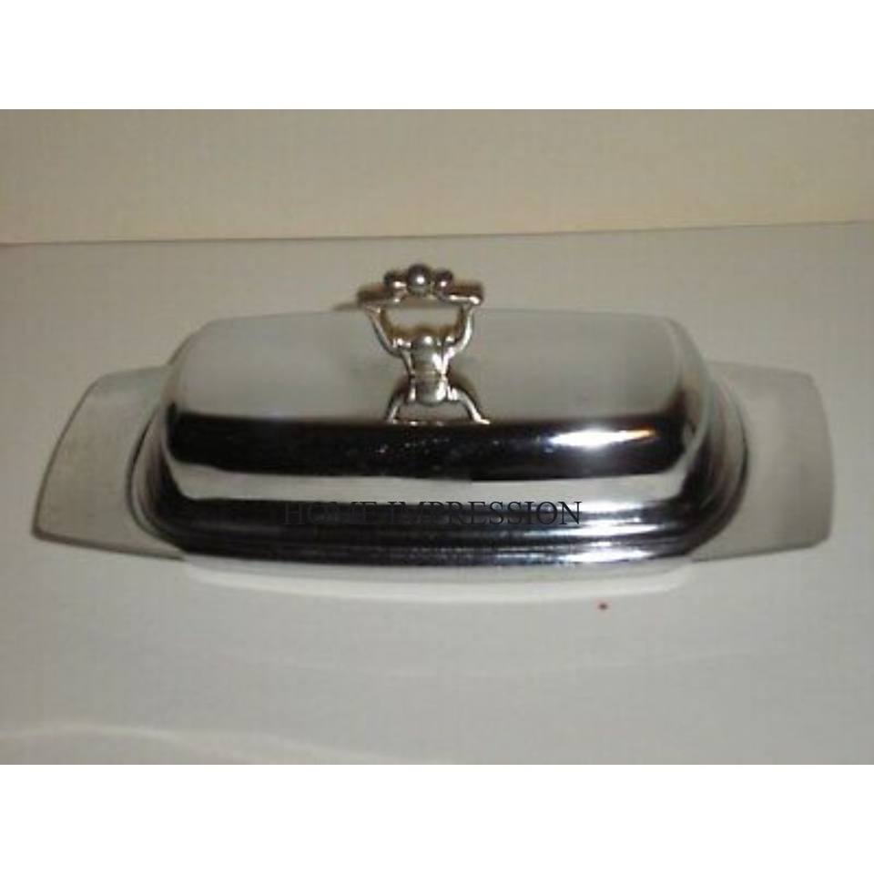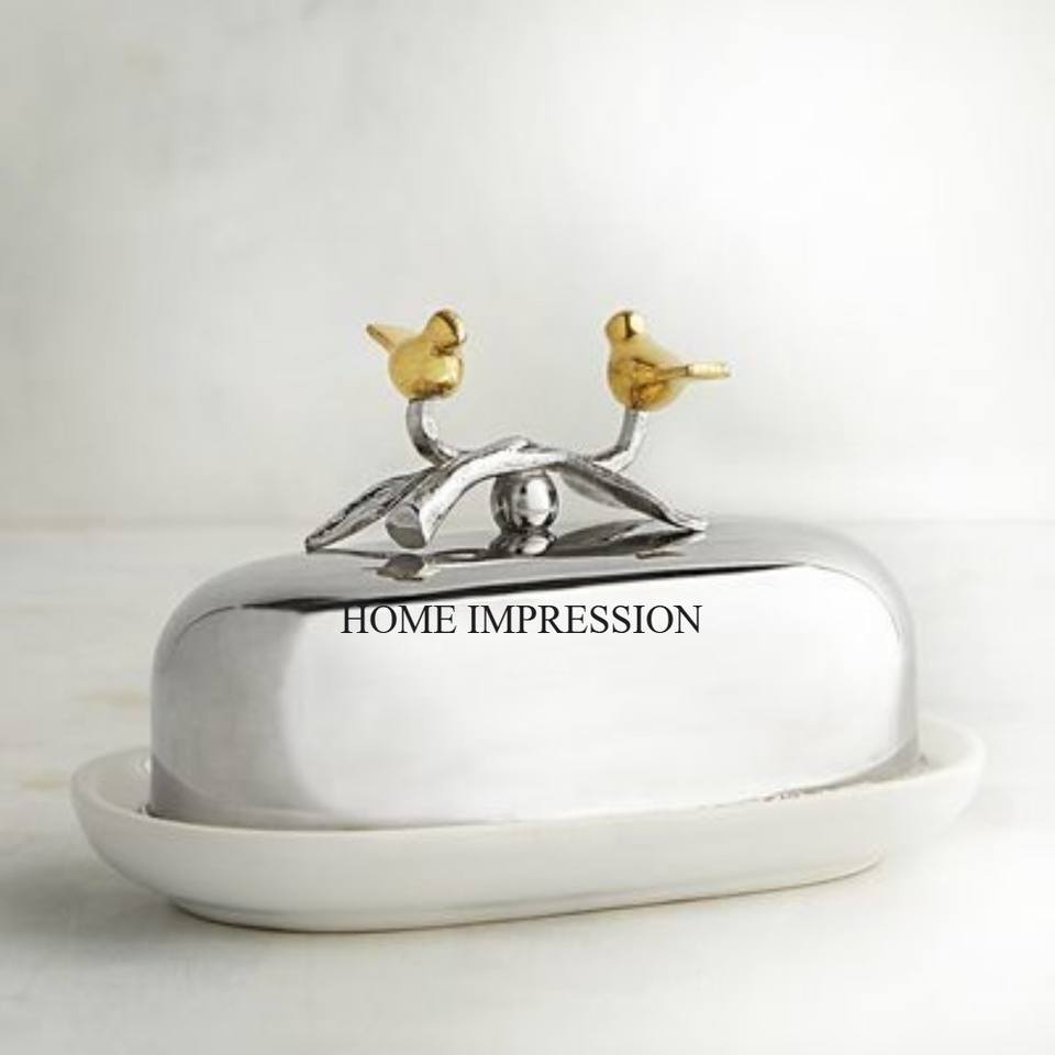 Nuevo patrón Última llegada Acabado de color plateado Pulido brillante Mejor calidad duradera Plato de mantequilla hecho de metal y suministros de platos