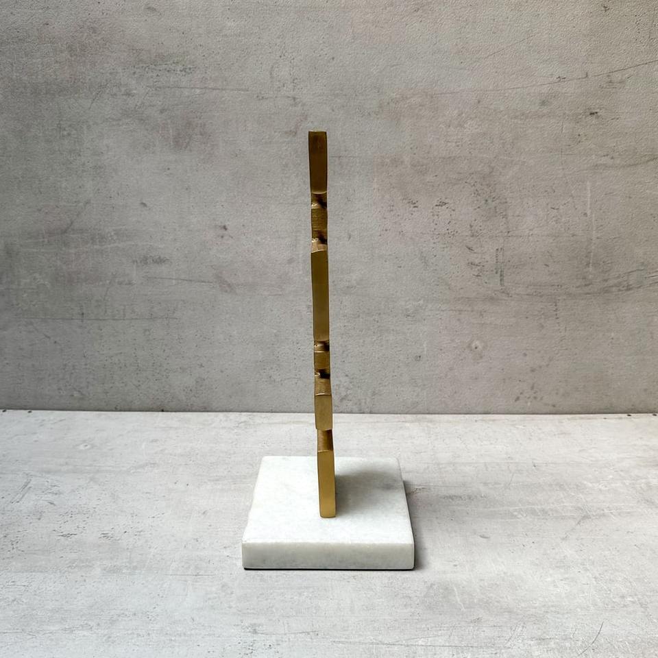 Escultura de Metal Chapado en Oro de Arte Contemporáneo, Base de Mármol Blanco, Nuevo Patrón, Escultura de Aluminio Hecha a Mano para Boda