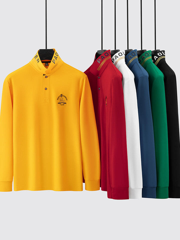Nueva Camiseta de Manga Larga para Hombre Paul, de Algodón Mercerizado, Transpirable, que Absorbe la Humedad, con Logotipo Frontal Juvenil para Negocios