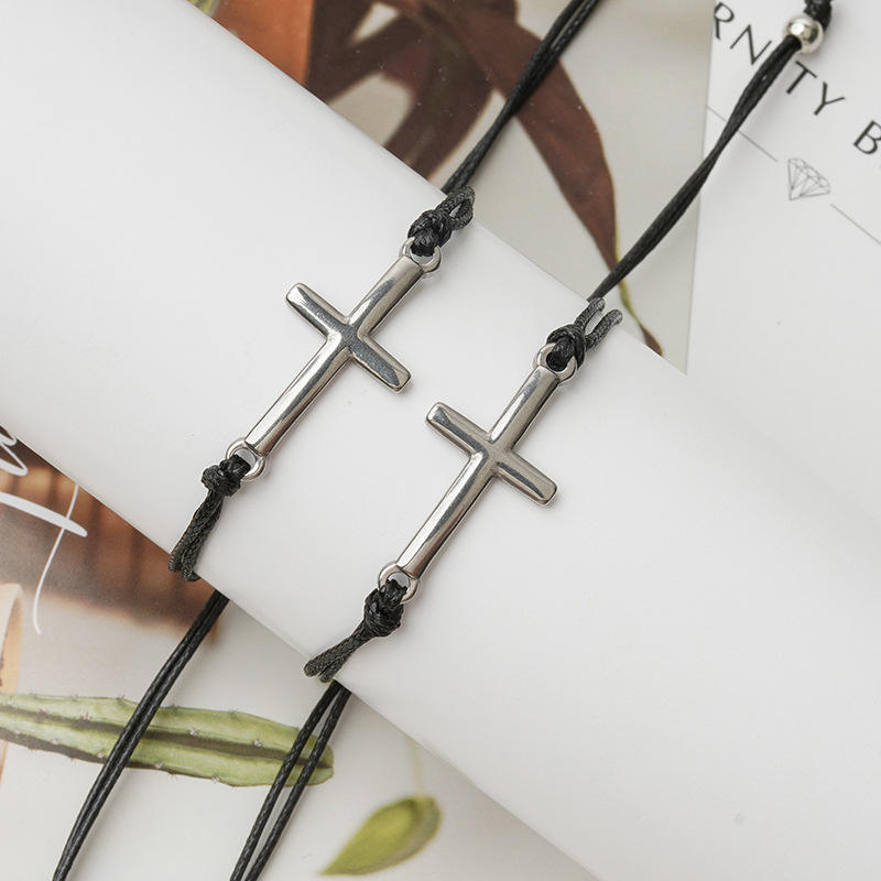 Nueva personalidad creativa hecha a mano hilo de cera trenzado ajustable 2 unids/set pulsera de acero inoxidable pulseras de eslabones de cadena de moda