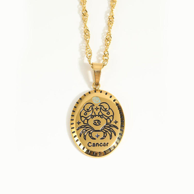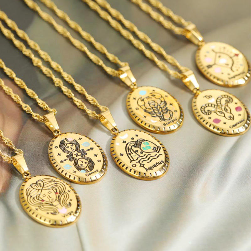 Nombre:18K chapado en oro de acero inoxidable 12 collar del zodiaco