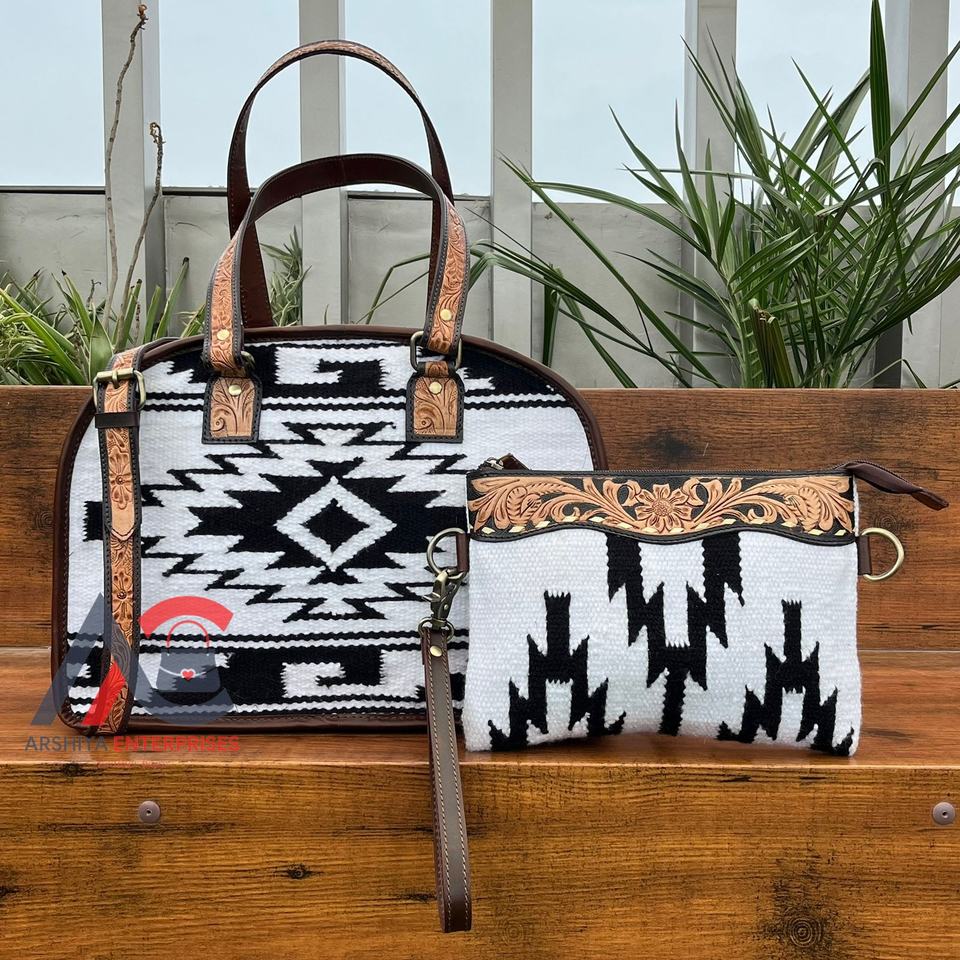 Aztec Tooled Leather 2-Piece Combo Set for Women's
