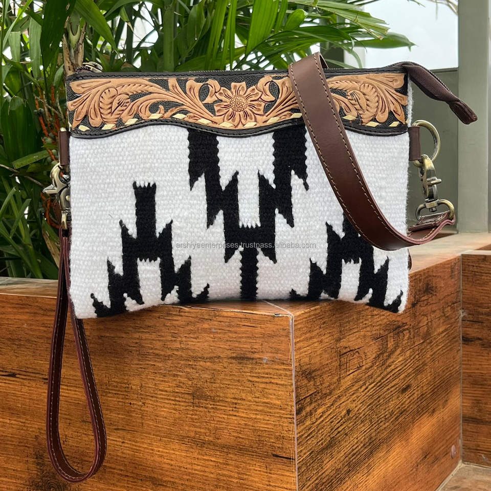 Conjunto combinado de 2 piezas de cuero azteca hecho a mano personalizado, bolso de mano y bolso de mano cruzado, combinado para uso al aire libre de mujer