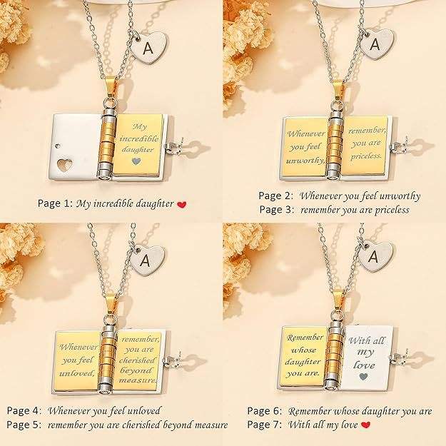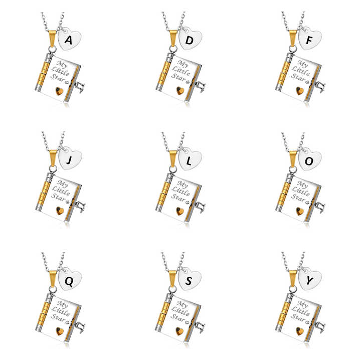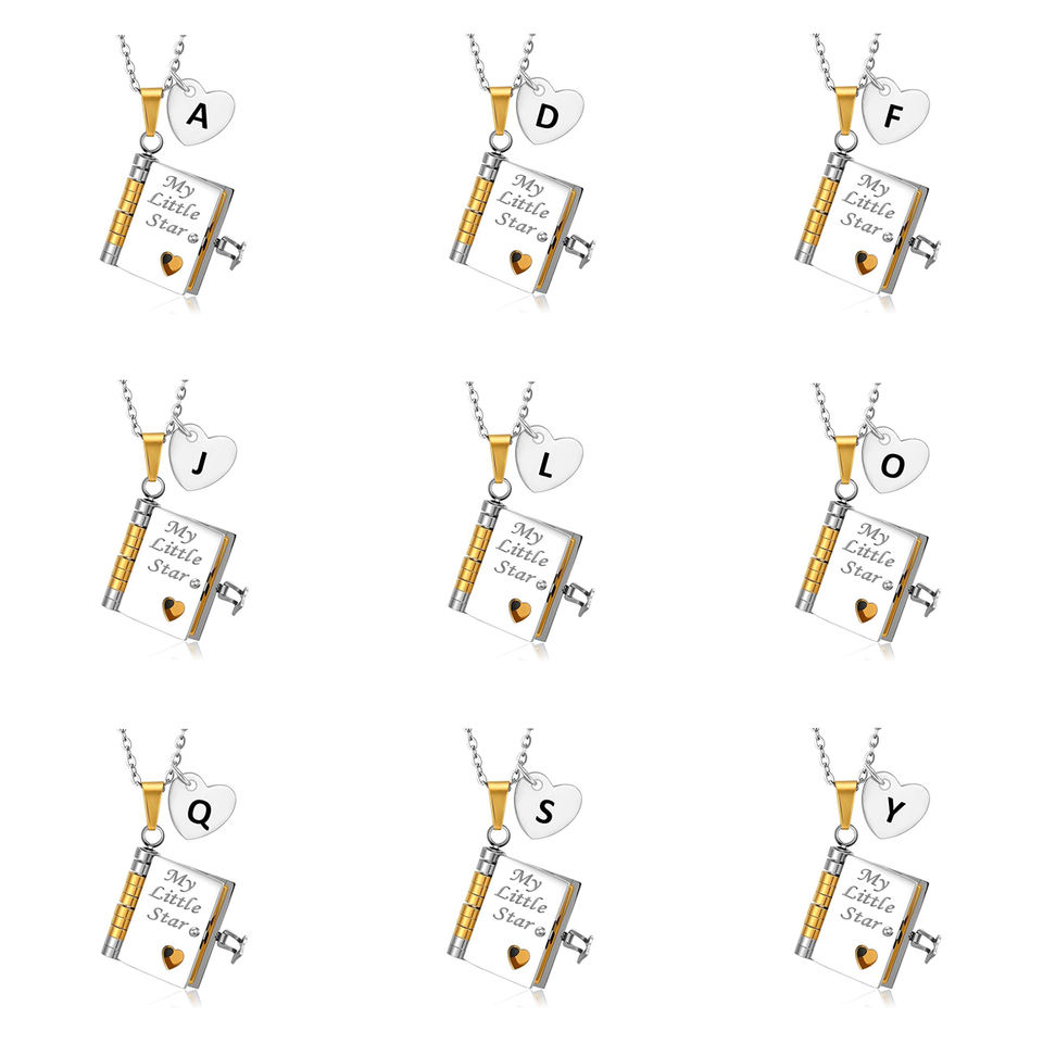 Nuevo nombre personalizado medallón hija libro Mini mensaje 26 letra inicial mi pequeña estrella libro colgante collar para regalo de hija