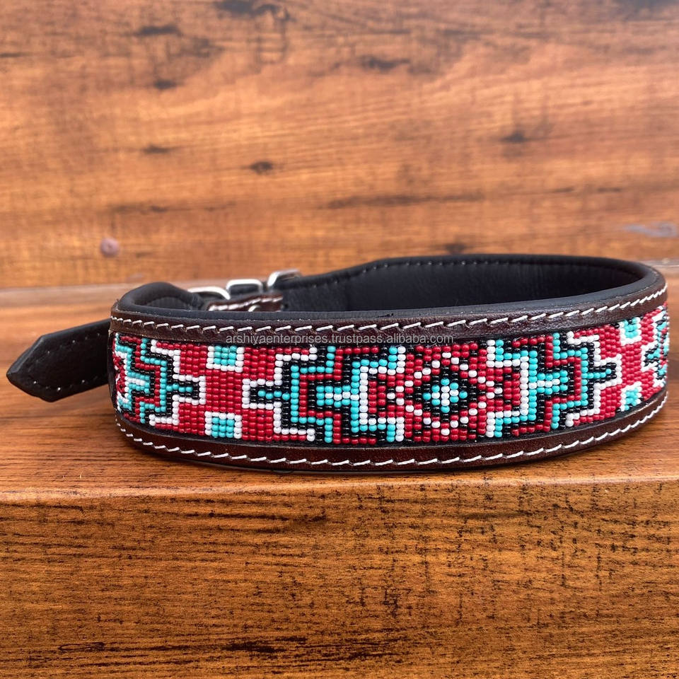 Nombre del producto:Collar de perro con cuentas de cuero genuino