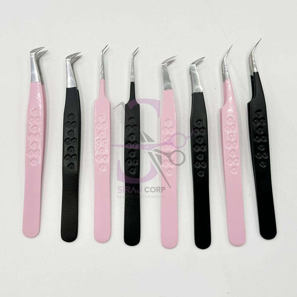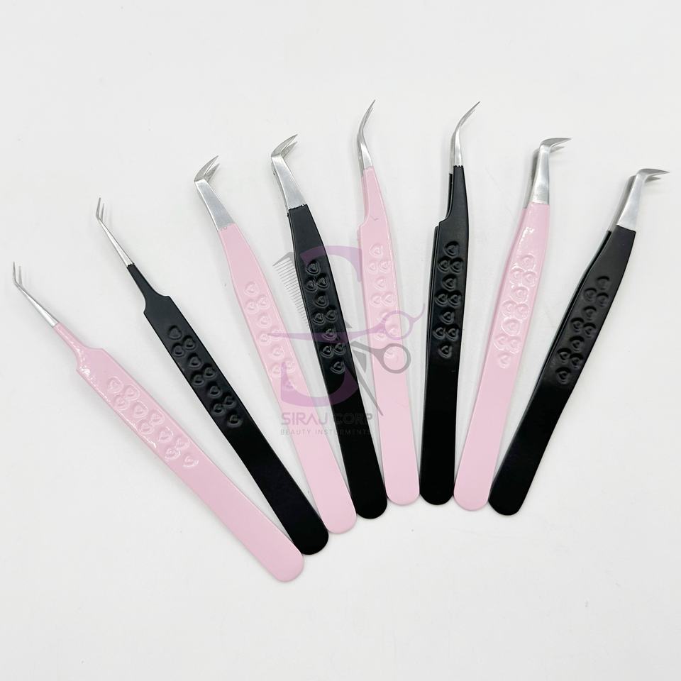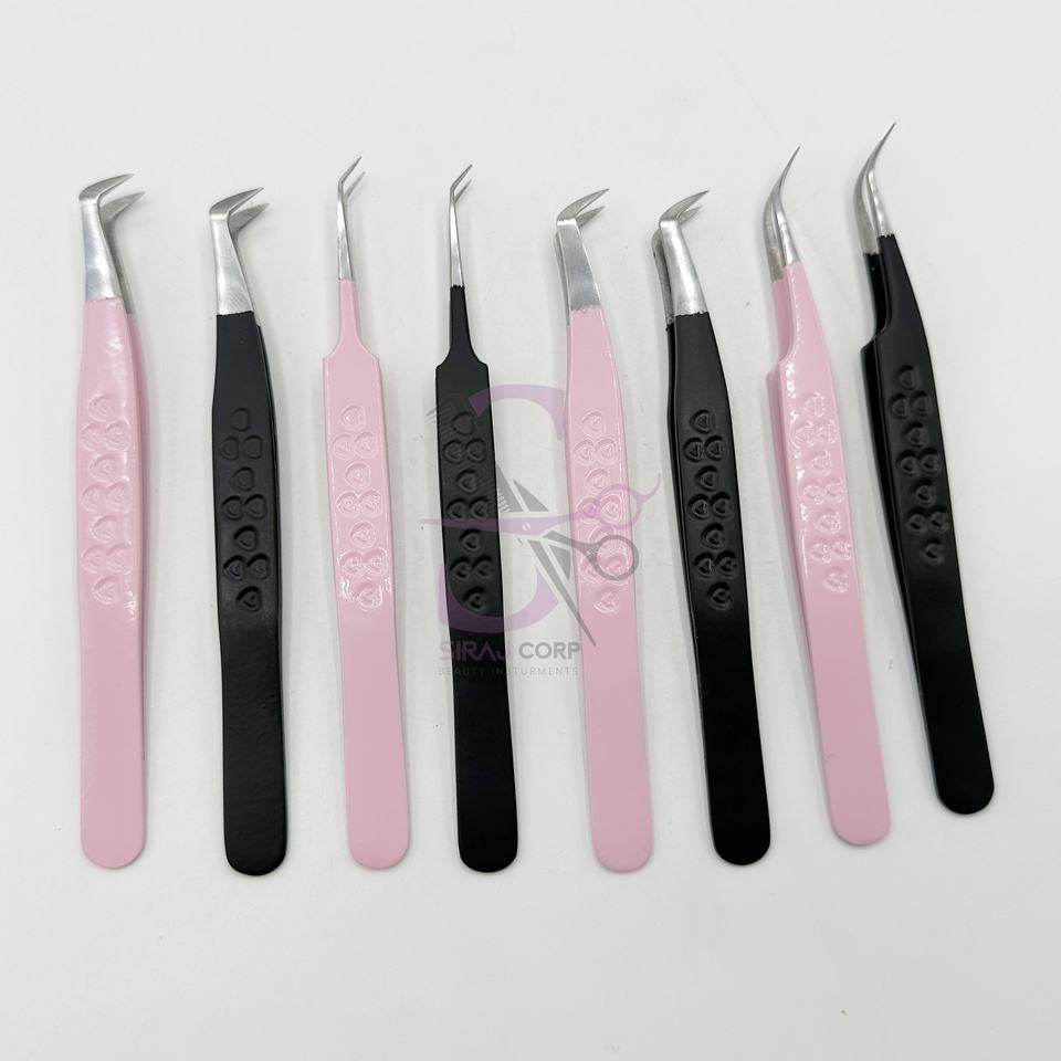 Nuevas pinzas de estilo de corazón Rosa Punta de pinza de pestañas de corazón negro Pinzas de extensión de pestañas sostenibles Logotipo Oferta de visón de acero inoxidable
