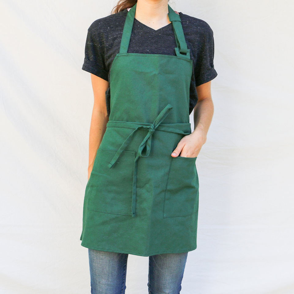 Nuevo diseño liso Lino Poliéster Hombres Mujeres Protección Limpieza de cocina Delantal de impresión de logotipo personalizado