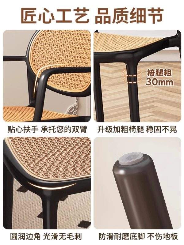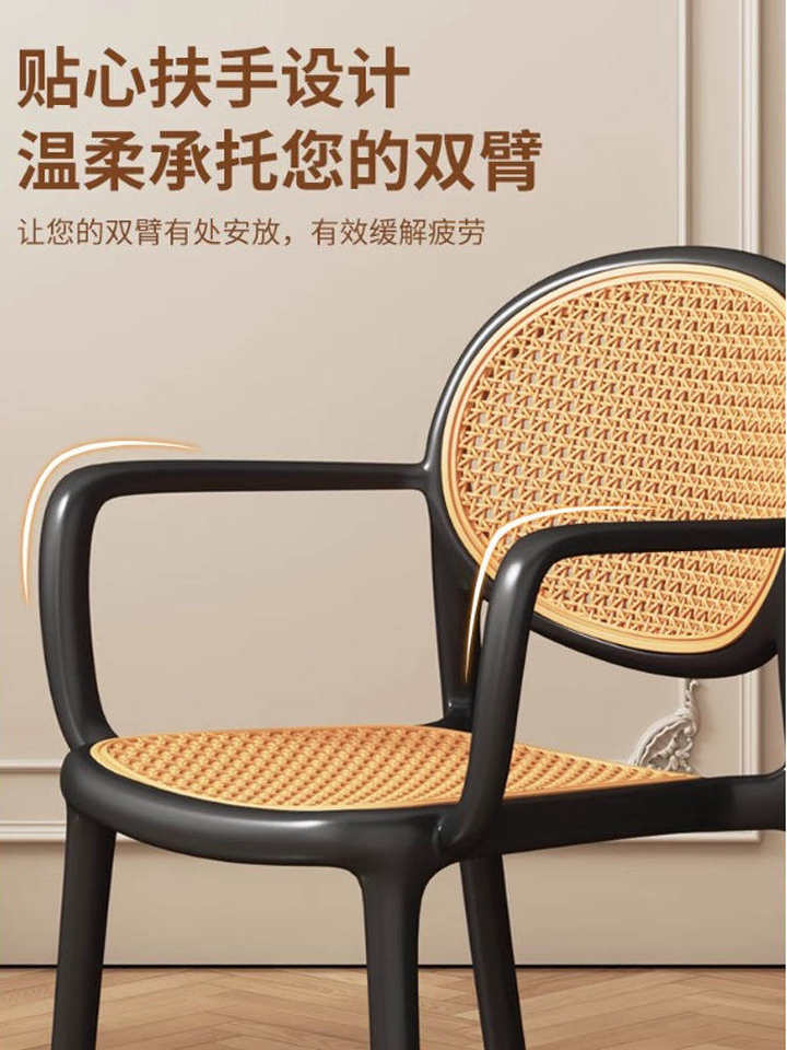 Nueva Silla de Comedor Apilable con Respaldo y Reposabrazos Extra Gruesos de Plástico para Uso Doméstico, en Restaurantes y Comercial