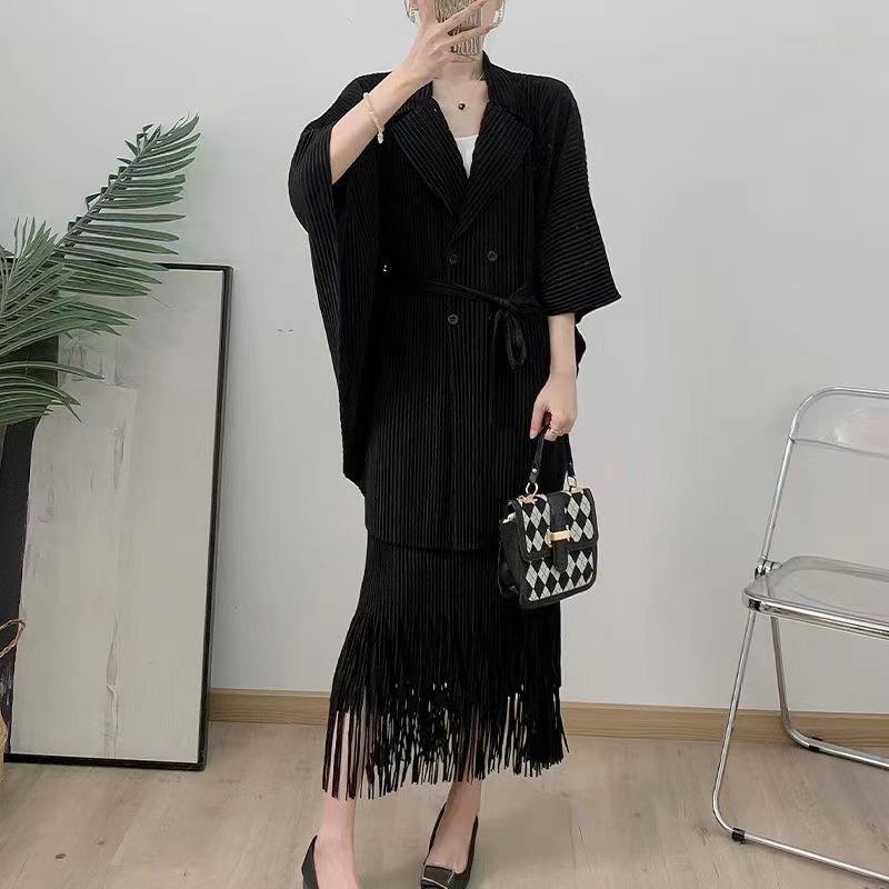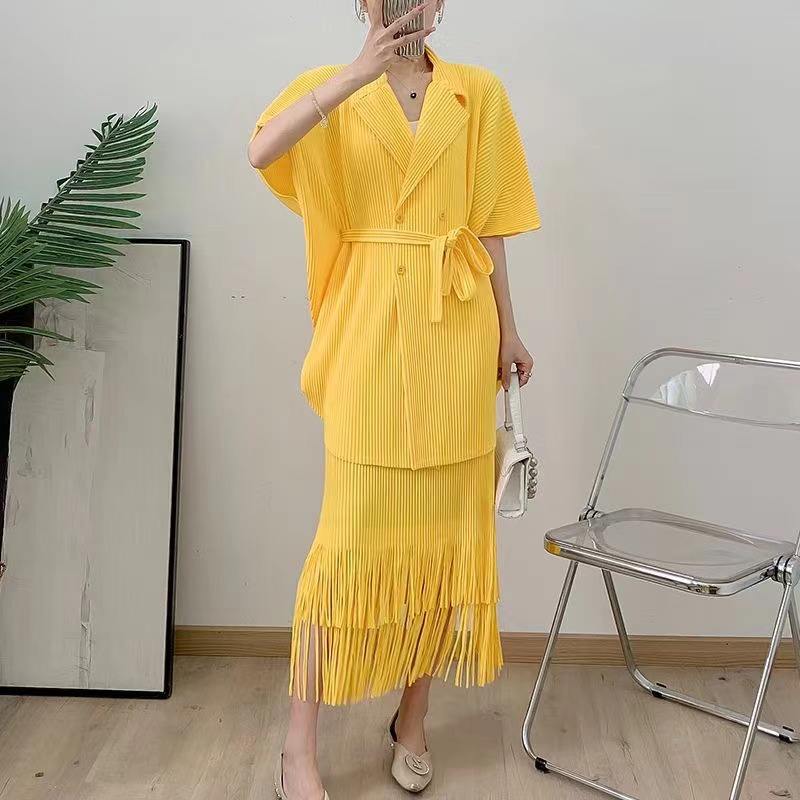 Nuevo plisado Miyaki Color sólido bloque de talla grande Irregular gasa faldas conjunto suelto ajuste Casual estilo verano dos piezas