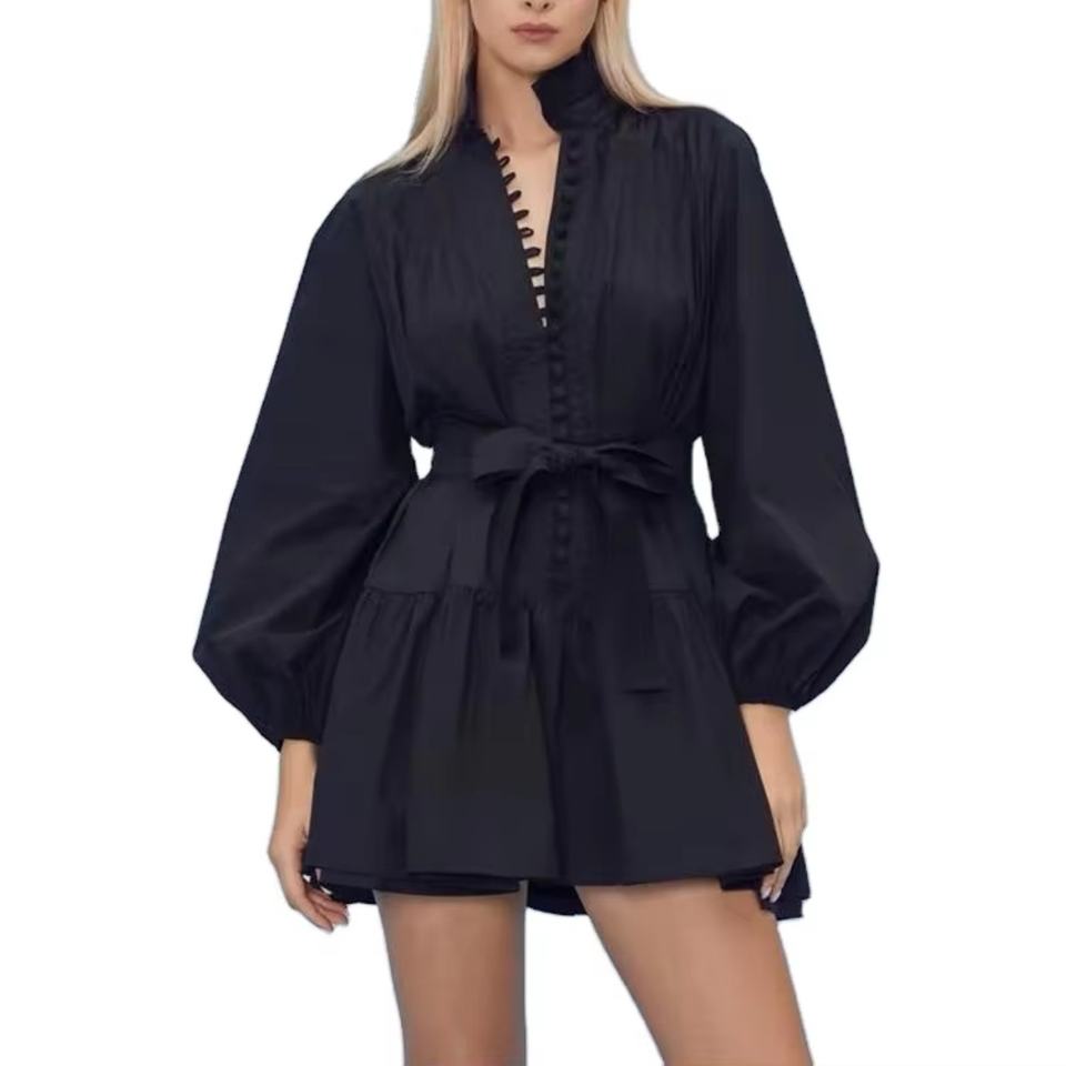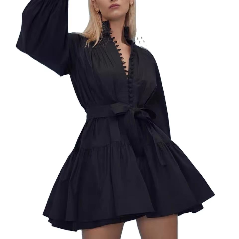 Nuevos Vestidos de Popelina de Manga Larga con Volantes, Cuello Alto, Plisados, Vestido de Algodón para Mujer, Mini Vestido Holgado de Algodón
